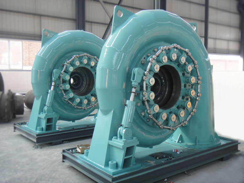 反擊式水輪機的一種,是現今應用最廣泛的一種型式。 我公司生產的混流式水輪機應用廣泛,結構簡單,尺寸小,造價低,滿負荷時效率高,比轉速為50~300,適用水頭為30~700米。目前單機容量最大的混流式機組為6000KW.